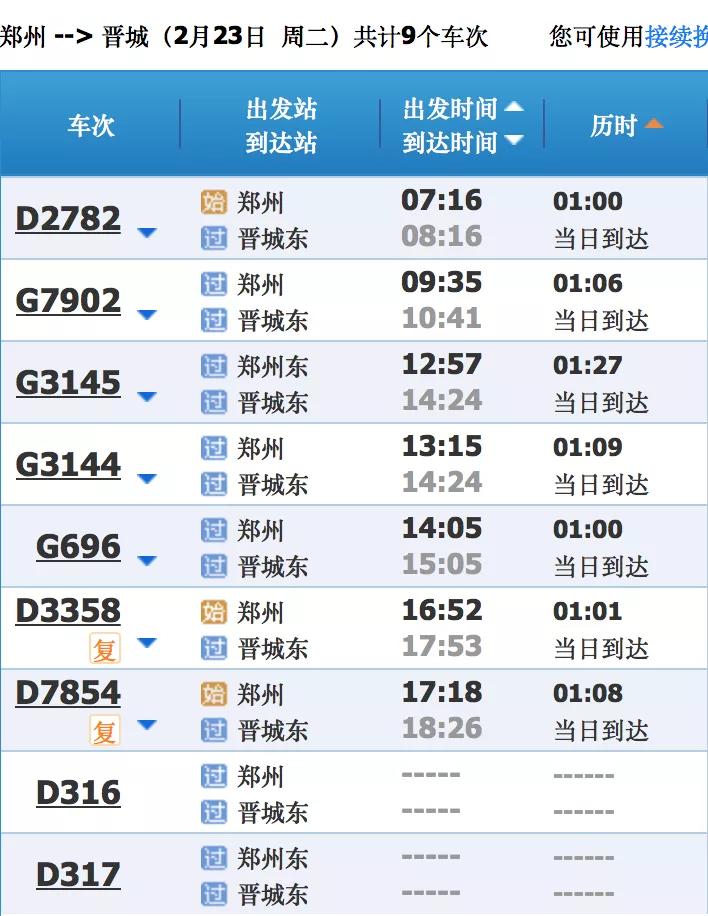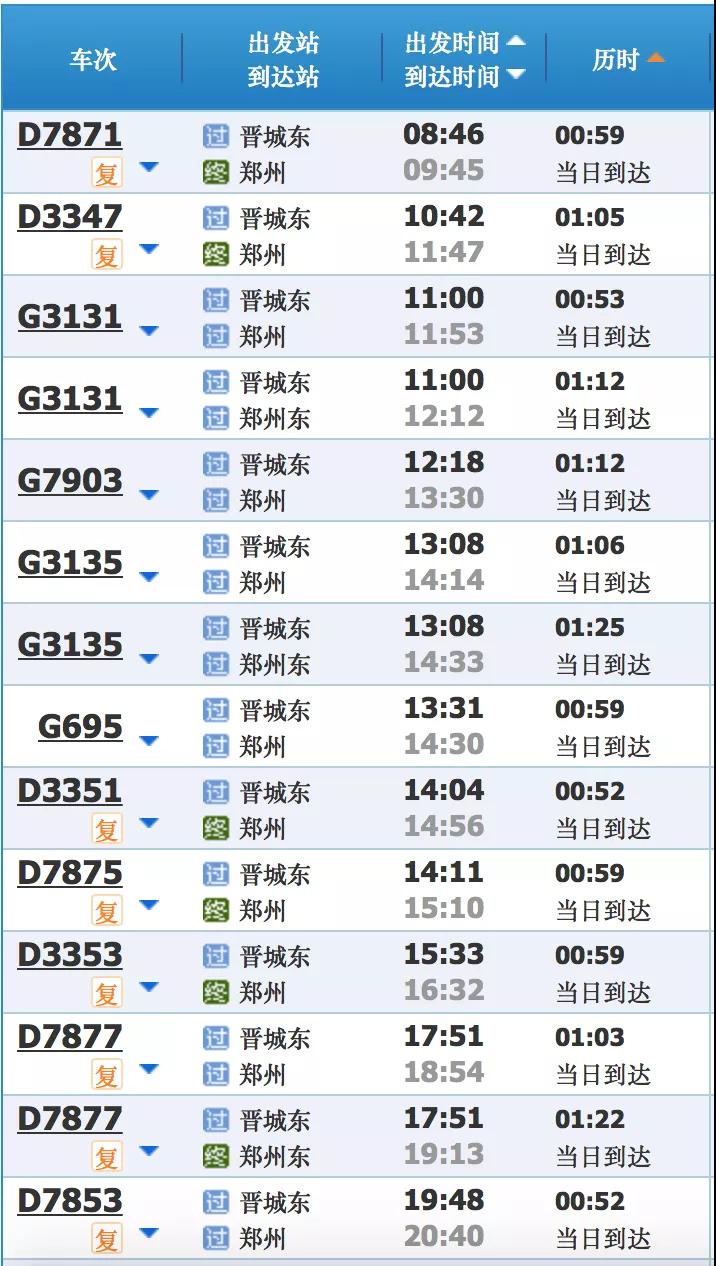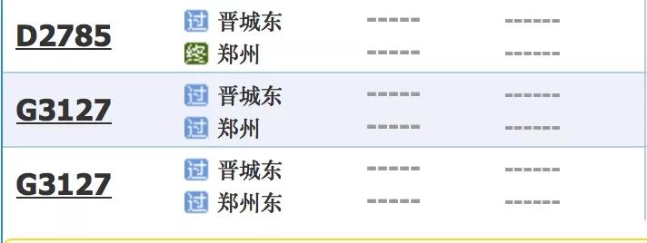 晋城东→郑州东