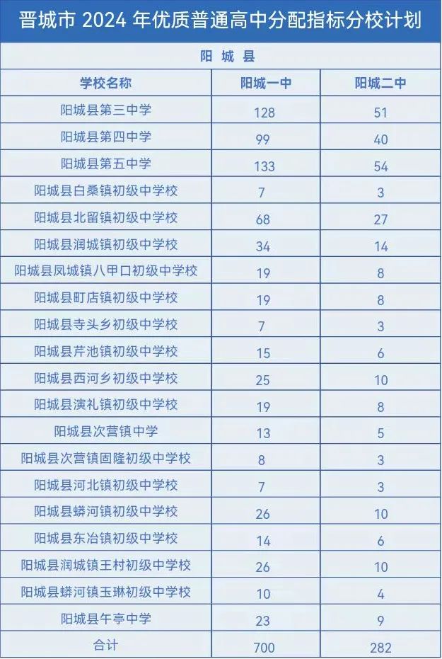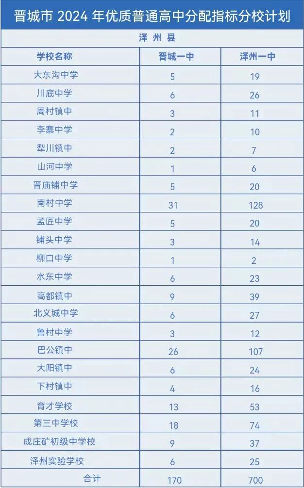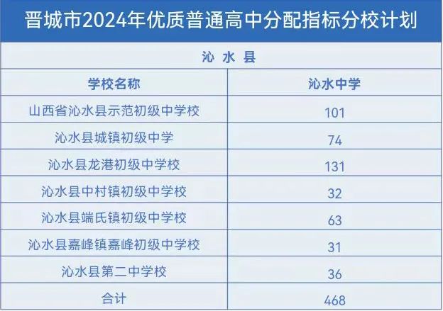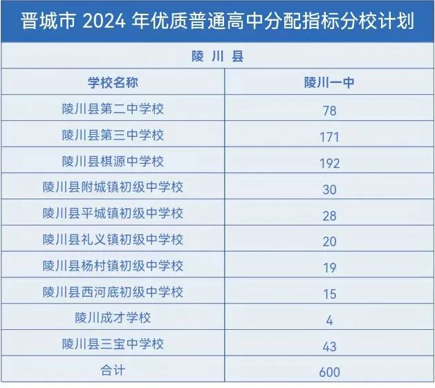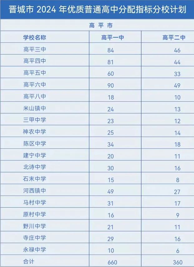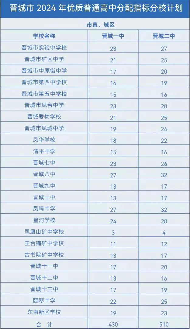 晋城市2024年优质普通高中分配指标分校计划出台,具体指标分配名额如下。