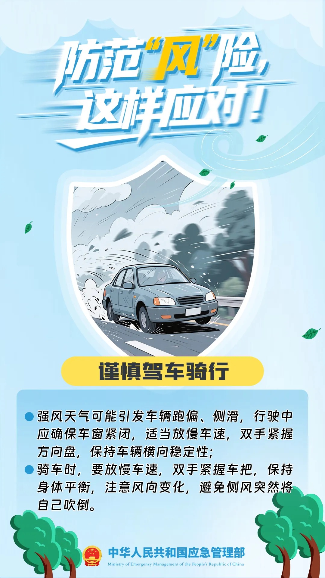 大风天气可能造成高空坠物、广告牌坠落、树木倾倒等,增加户外作业和出行安全风险,还可能引发火灾事故,防范这些潜在“风”险这样应对!