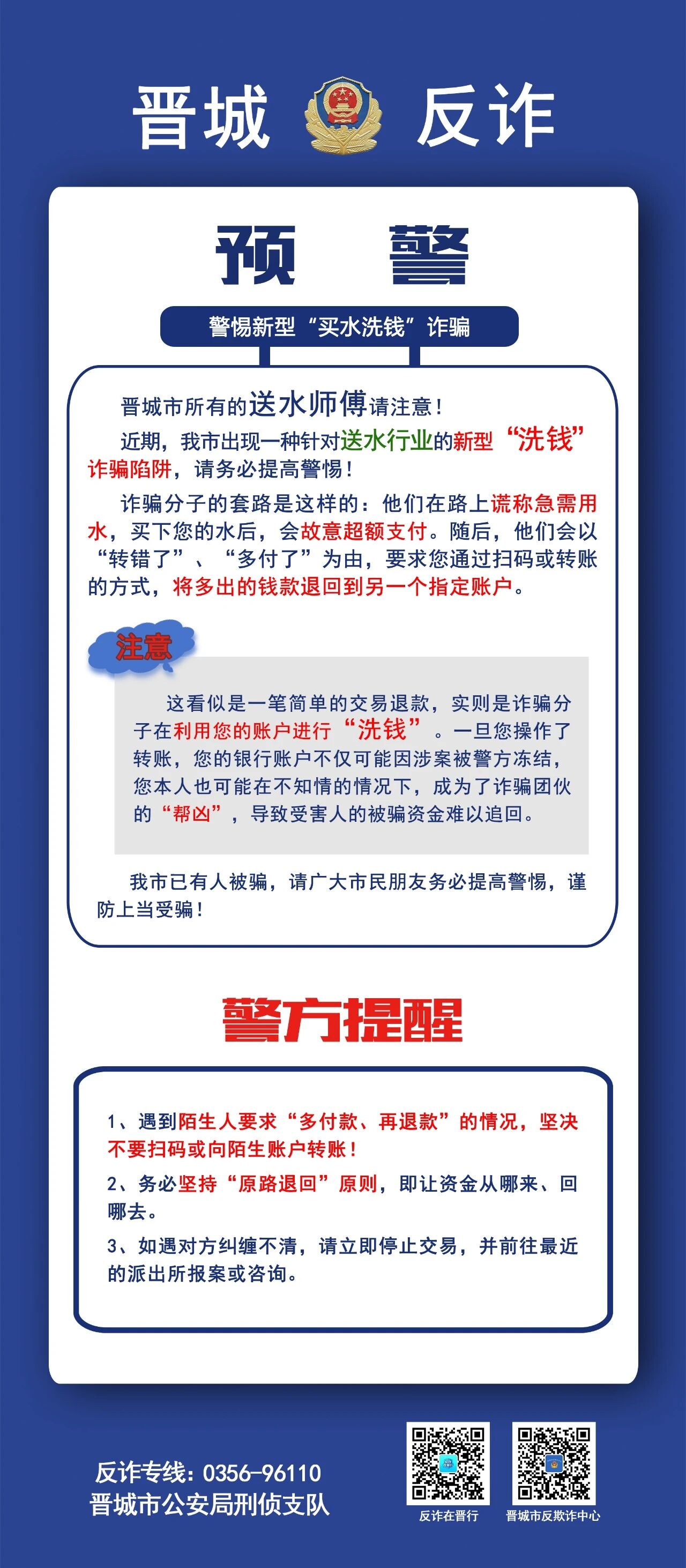 晋城送水师傅请注意!警惕“买水洗钱”诈骗
