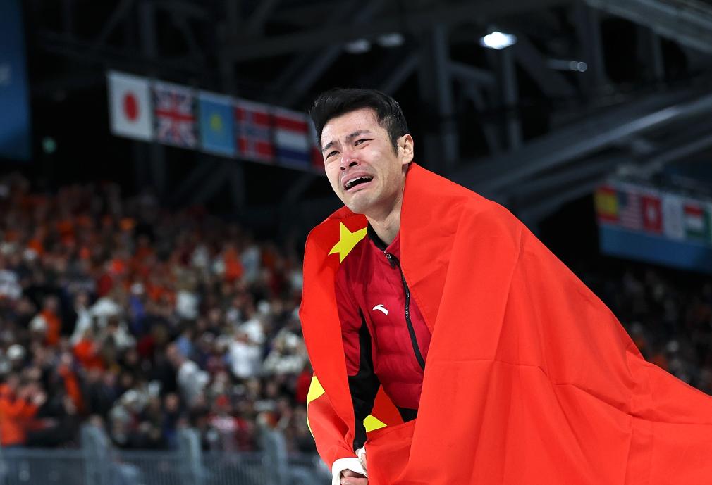 确认自己获胜后,宁忠岩泪洒赛场,他身披五星红旗缓缓绕场滑行庆祝,观众纷纷起身为他欢呼、鼓掌。“这个成绩对我来说非常、非常满意。我的目标是打开(1分)43秒,但我真没想到自己能滑进(1分)42秒。”他说。
