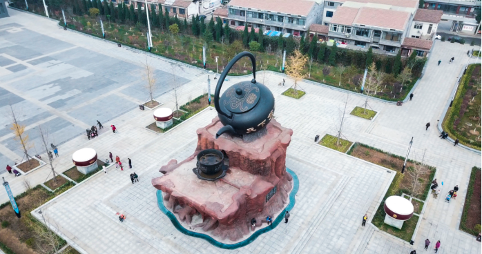 该壶于2019年3月由南村镇当地铸造企业牵头进行可行性论证,并做了相关前期准备,8月份组织实施动工于同年12月22日晚8点37分一次性浇铸成功,后经喷砂、打磨、抛光、防锈等多道工序处理,于2020年4月14日全部安装完毕,真正的“慢工出细巨活儿”。