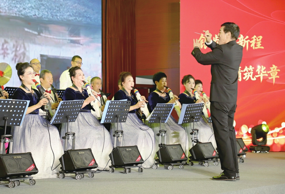 老年学员正在进行演出。