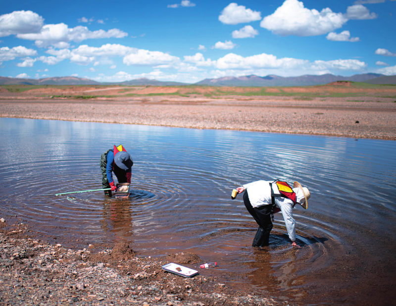 长江科学院科考队员在长江源区采集着生藻类样本(资料照片)肖艺九摄/本刊