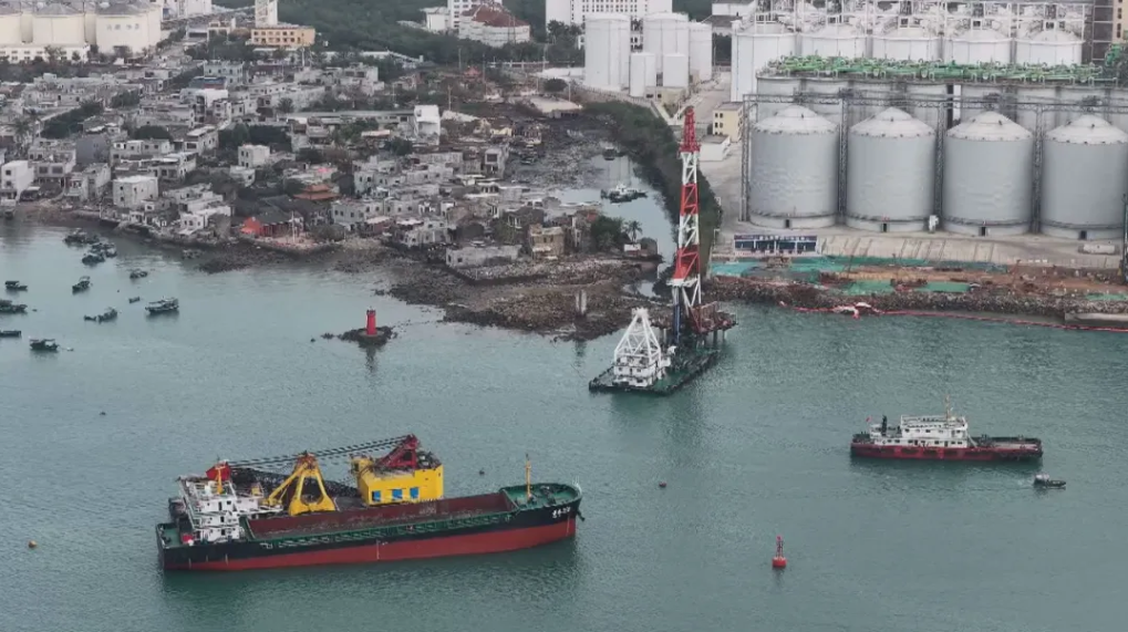 该项目质量负责人苏利刚说,新粮油码头建成后,大型货轮可直靠洋浦,原料通过输送带直达厂区,有效降低损耗,实现“船—仓—厂”无缝衔接,服务粮油加工产业集群发展。