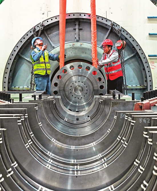 国电电力大同湖东发电有限公司1号机组发电机转子穿装作业一次成功。本报记者刘通 本报通讯员张占兵摄