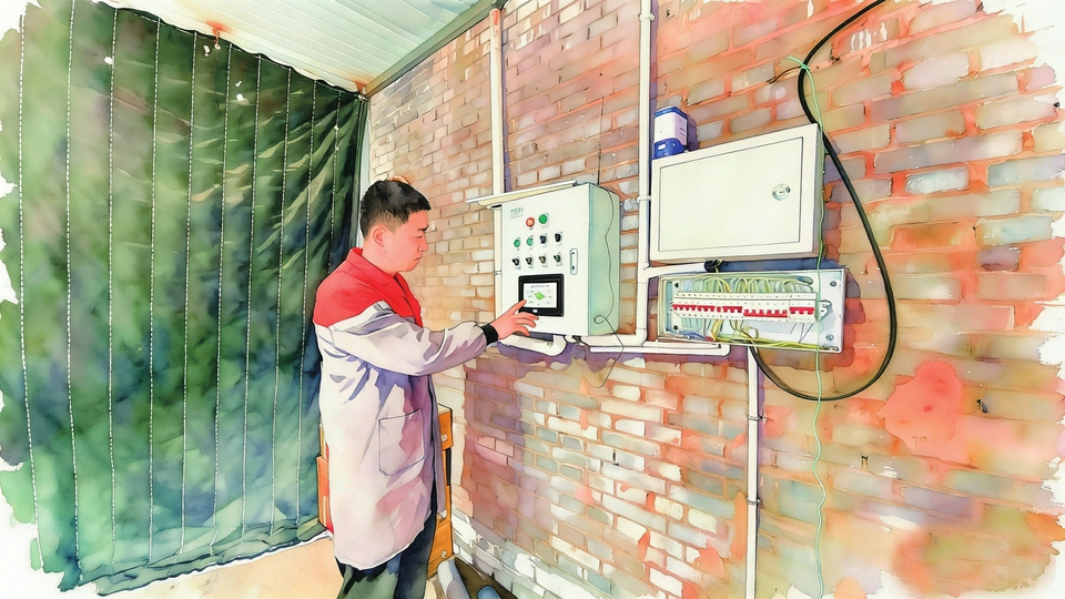 ③菌生万物生物科技有限公司工作人员正在设置温湿气光一体化智能监控系统参数。崔如意摄