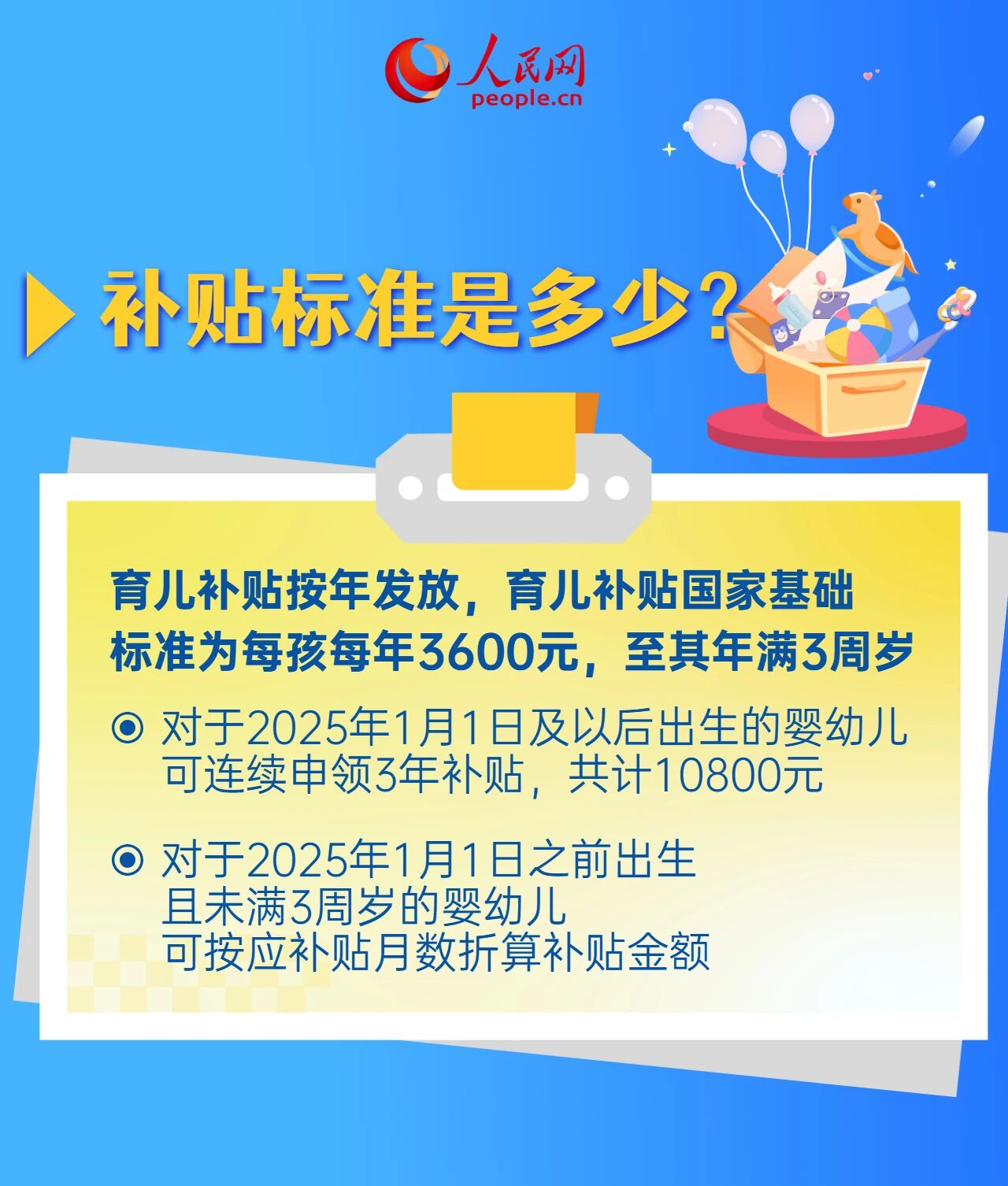2025年7月,国家出台《育儿补贴制度实施方案》,明确规定为3周岁以下婴幼儿提供每孩每年3600元的补贴,切实减轻家庭育儿负担。根据工作安排,2026年育儿补贴于1月5日起全面开放申领。