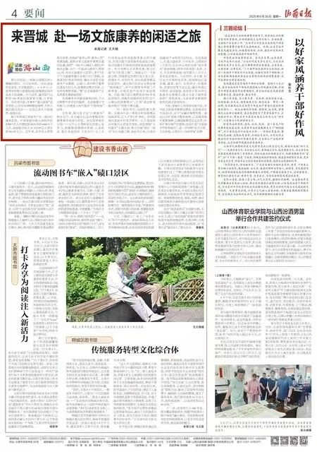 6月30日,《山西日报》刊登文章《来晋城赴一场文旅康养的闲适之旅》,文章描述的,这种闲适之旅、这种惬意生活,就叫“晋城”。