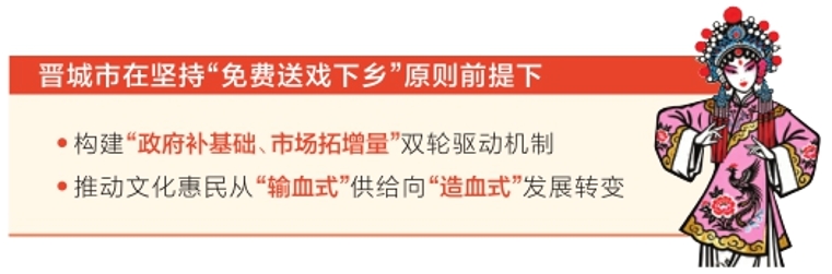 作为我省文化强省建设的重要举措之一,“免费送戏下乡”惠民工程自2017年实施以来,晋城市不断总结经验、创新机制,在满足人民群众多样化、多层次、多方面精神文化需求的同时,积极平衡公益属性与市场活力、破解供需错位难题,兼顾演出院团利益,努力探索社会效益和经济效益的双赢之路。