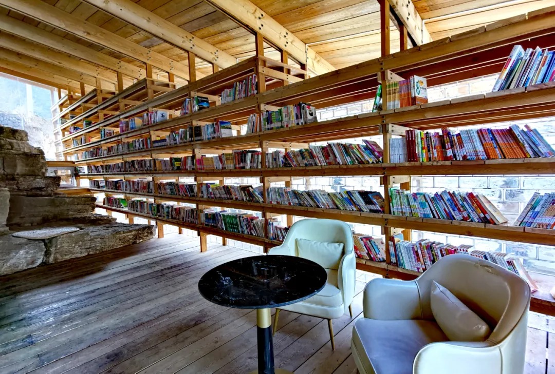 浙水河南岸上的书屋,因屋内岩石形状,跟一页页书相似。浙水人因地制宜、依山建起了一座休闲书屋,称“页岩书屋”。书柜格局的外墙,顺势而下的屋顶,与整村静谧悠然的风格融为一体,给游客带来新鲜别致的感观,让游客乐享旅“图”,成为太行一号国家风景道起点上的“网红”书屋。